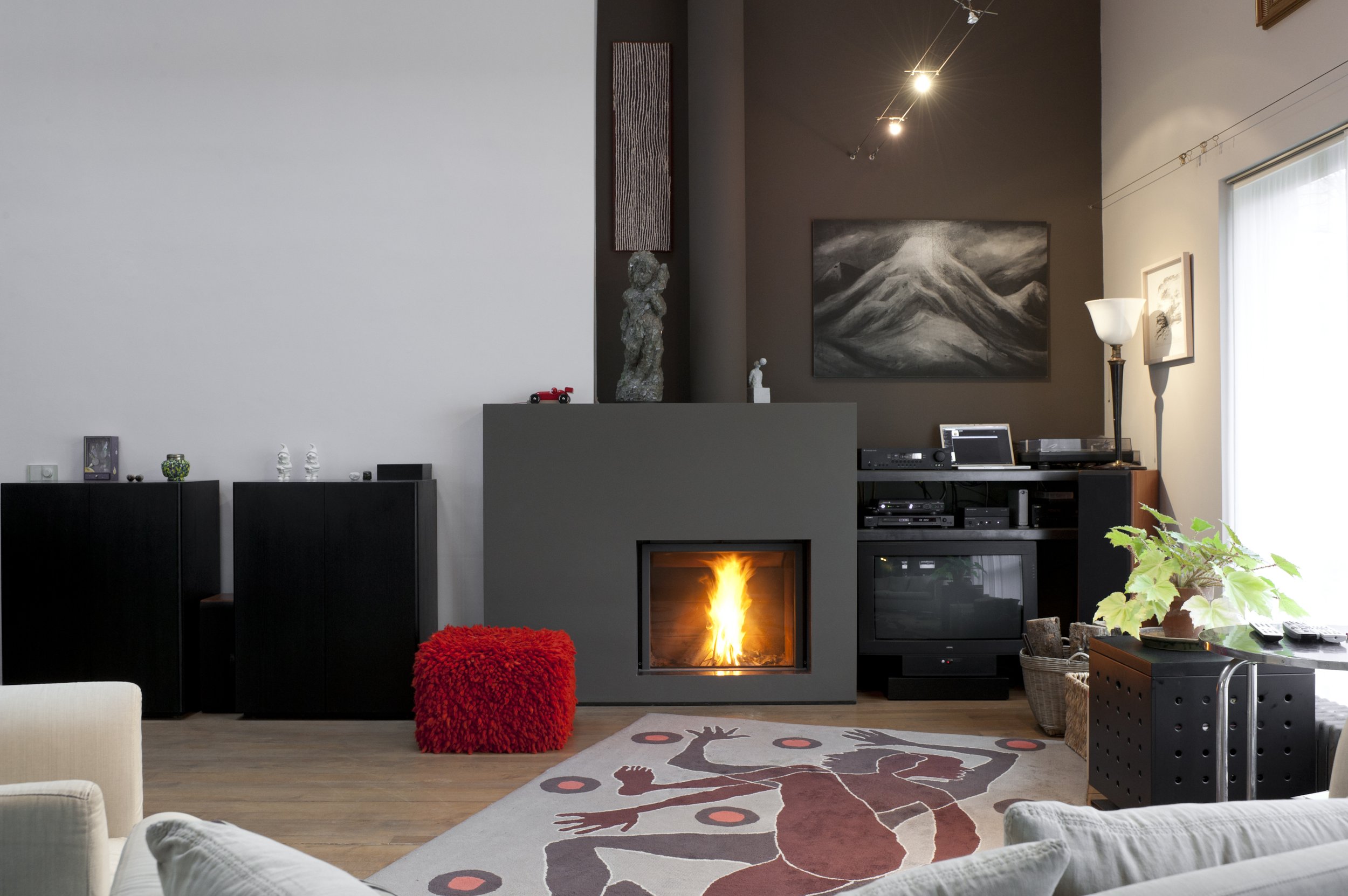 Inbouwhaard met liftdeur: de openhaard wordt een efficiënt gesloten haard door de ruit te sluiten